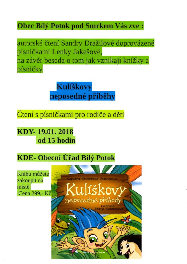Čtení s písničkami pro rodiče a děti - 19.1.2019 od 15:00 hodin