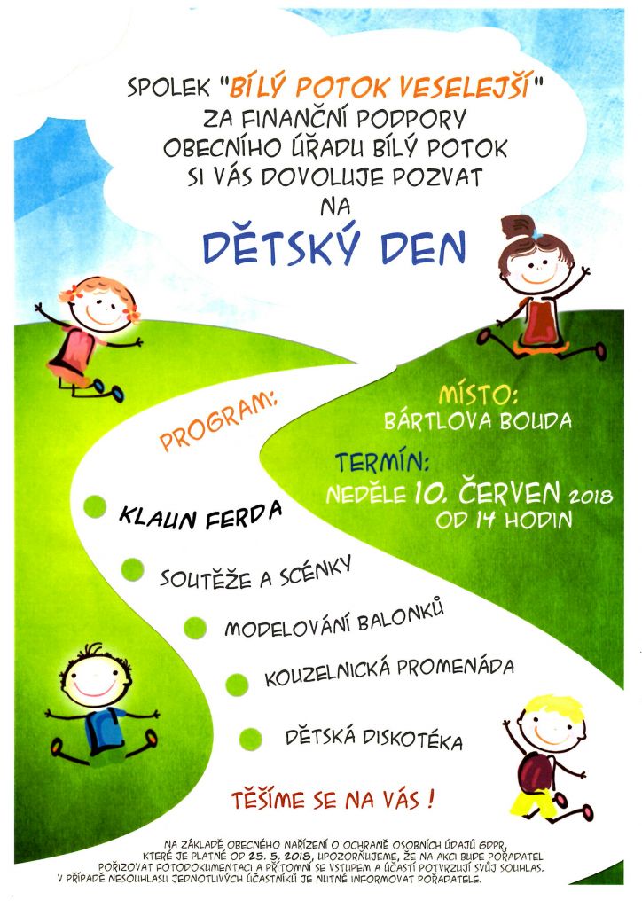 10.6.2018 spolek Bílý Potok Veselejší pořádá dětský den, začátek v 14:00 hodin - více pozvánka