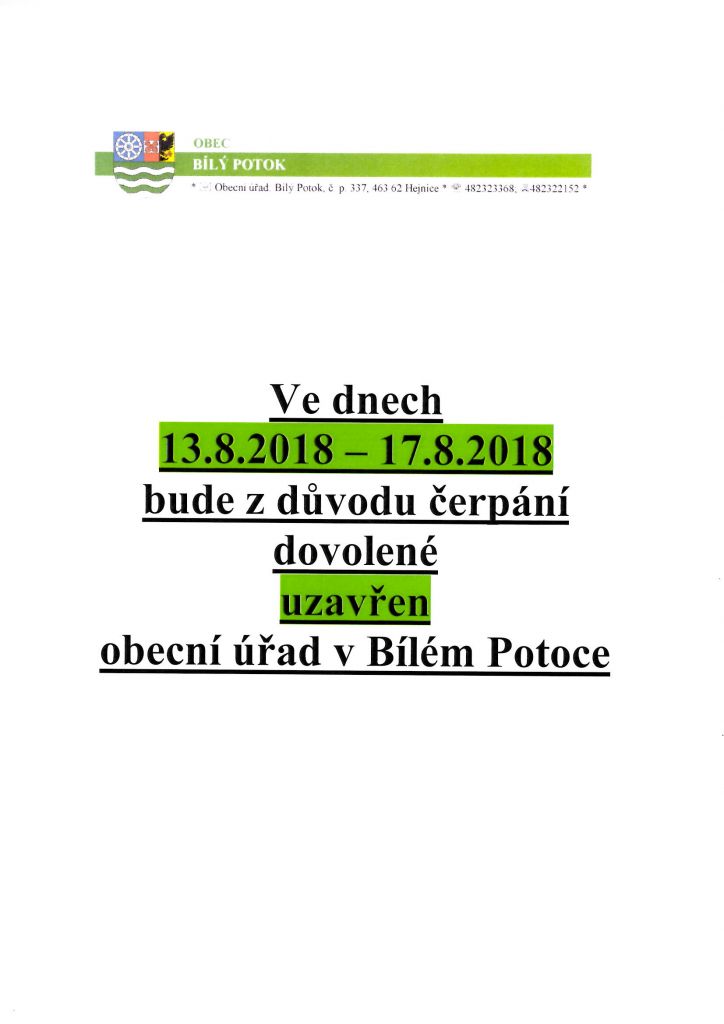 čerpání dovolené ve dnech 13.8.2018 - 17.8.2018