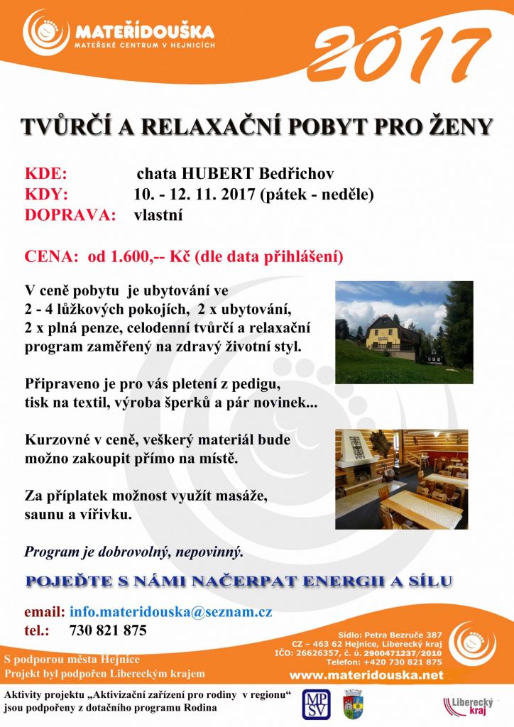 Mateřské centrum Mateřídouška - nabídka tvůrčího pobytu pro ženy