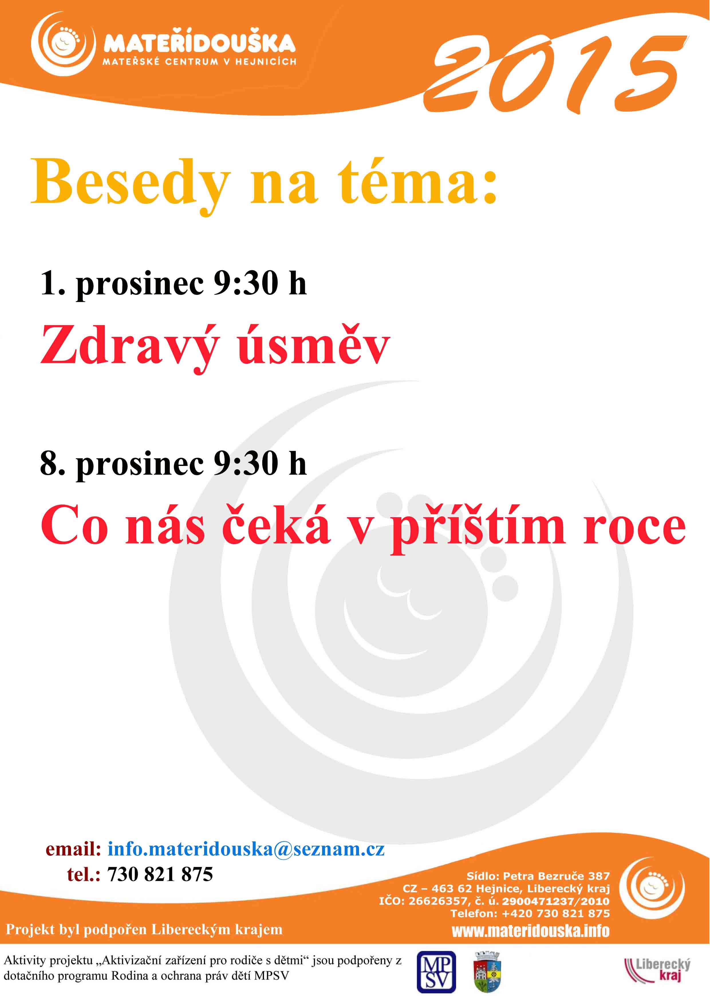 pozvánka na akce v MC Mateřídouška v prosinci 2015