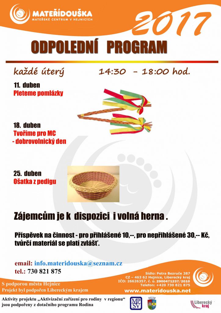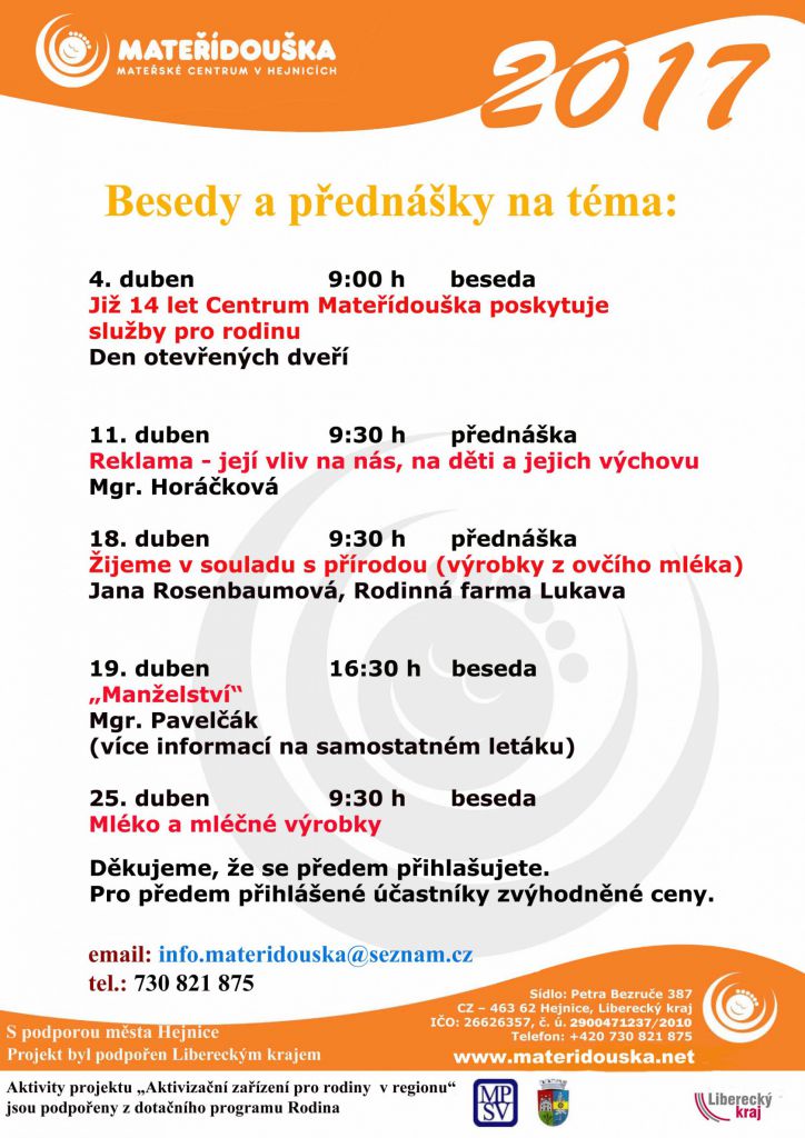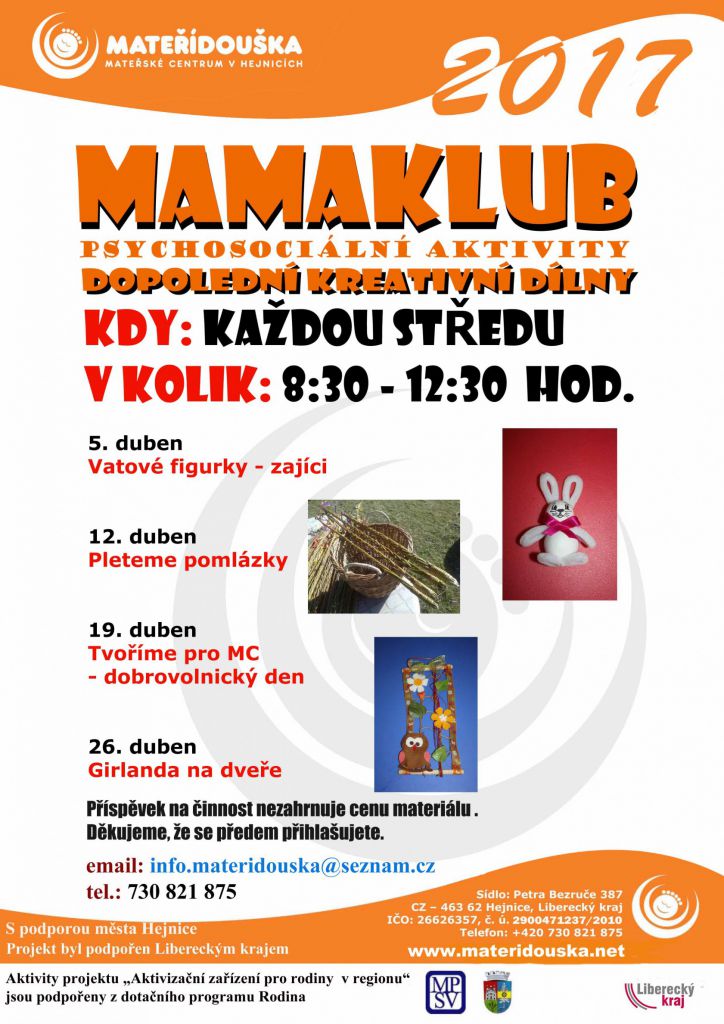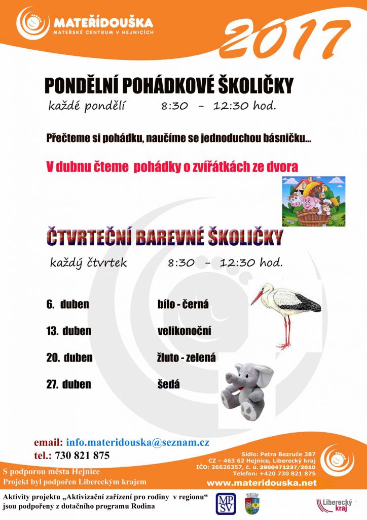 Pozvánky do MC Mateřídouška v dubnu 2017