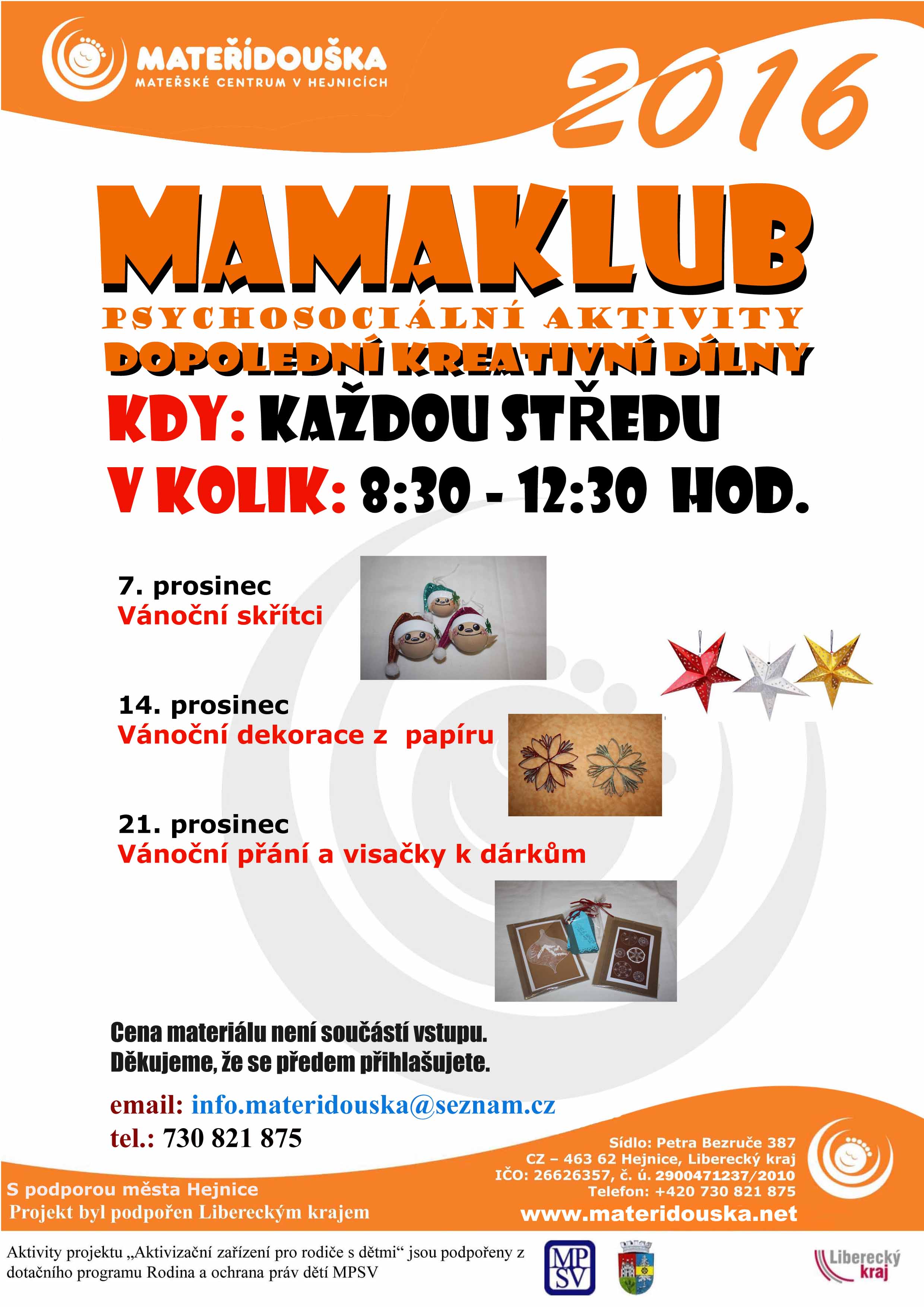 Program Mateřského centra Mateřídouška Hejnice v prosinci 2016