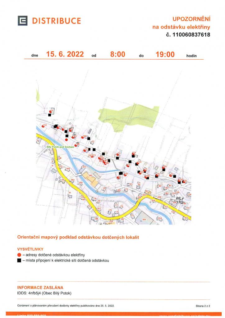 Informace o plánované odstávce elektrické energie dne 15.6.2022 od 08:00 do 19:00 hodin - lokalita je uvedena v příloze