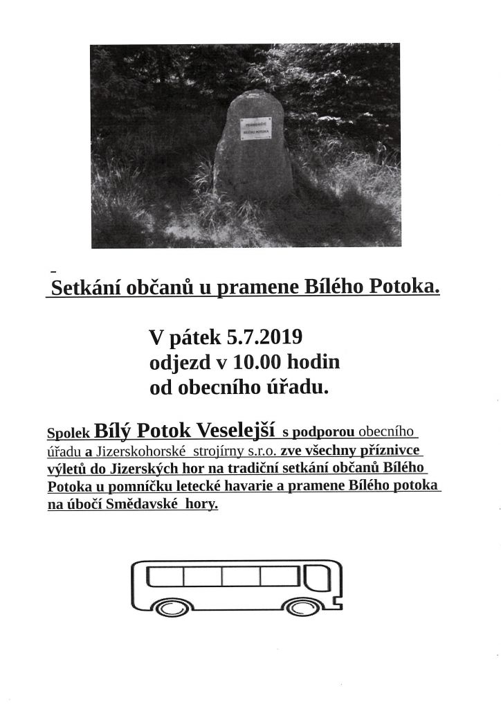 Pozvánka na setkání u pramene Bílého potoka a pomníčku letců na Smědavské hoře