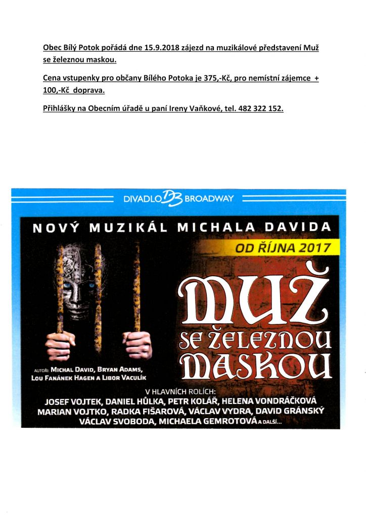 15.9.2018 - divadlo Broadway - Muž se železnou maskou - od 14:00 hodin