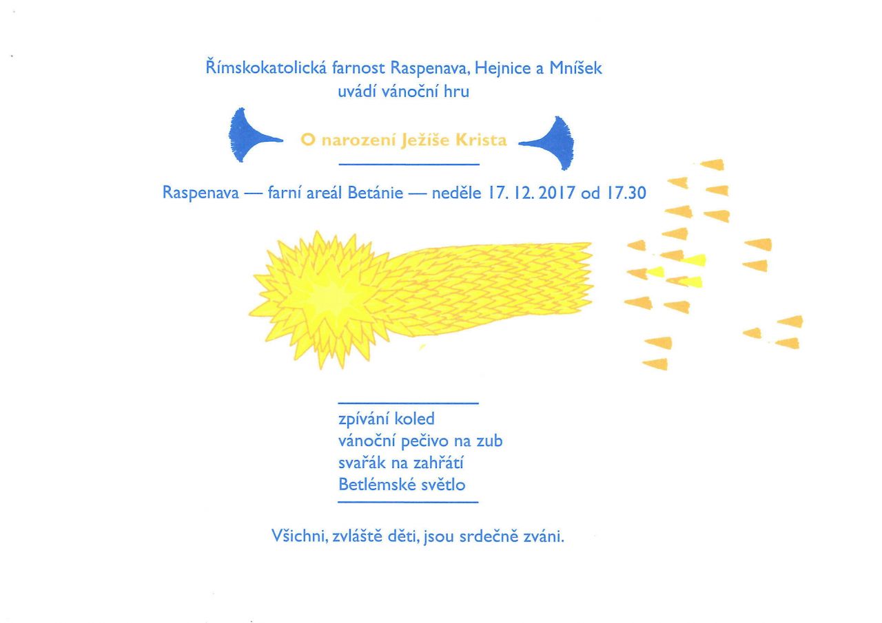 Římskokatolická farnost Raspenava, Hejnice a Mníšek vás zve na vánoční hru