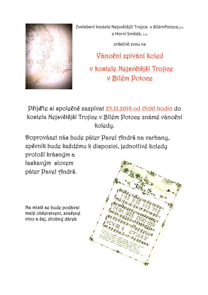 Pozvánka na druhé zpívání koled v kostele v Bílém Potoce dne 23.12.2018 od 15:00 hodin